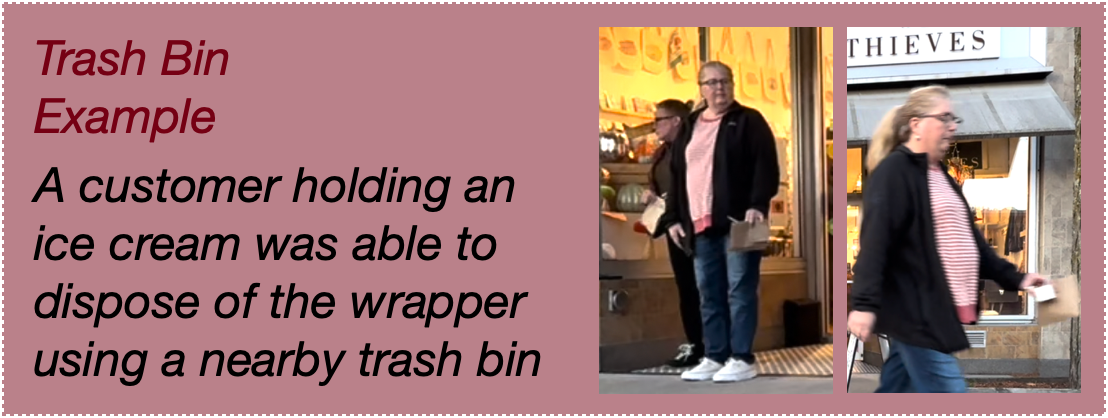 Environmental features also influenced whether pedestrians chose to stop or linger: