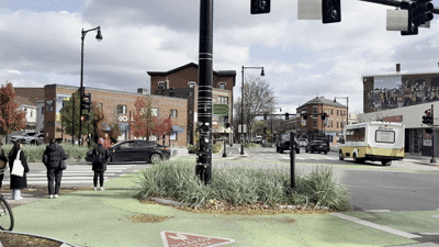 Neighborhood vitality is often expressed through the visible movement of street users: pedestrians passing storefronts, cyclists gliding along bike lanes, and vehicles flowing through intersections.