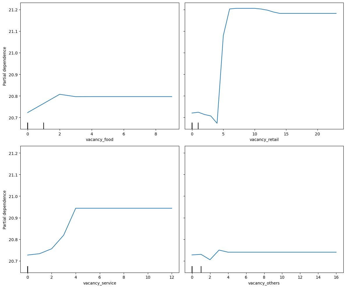 Scenario simulations rely on ceteris paribus assumptions: vacancy-change scenarios hold store density, baseline ridership, and competing stations constant, capturing marginal effects rather than full system dynamics